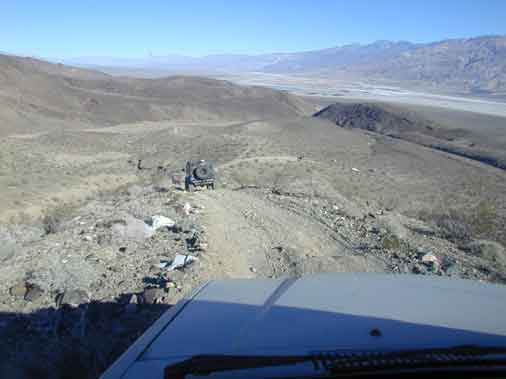 Down hill trail to Panimint Valley. It was a beautiful day. You could see for miles with the clear blue sky. Fish Canyon is to the left up.