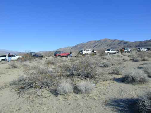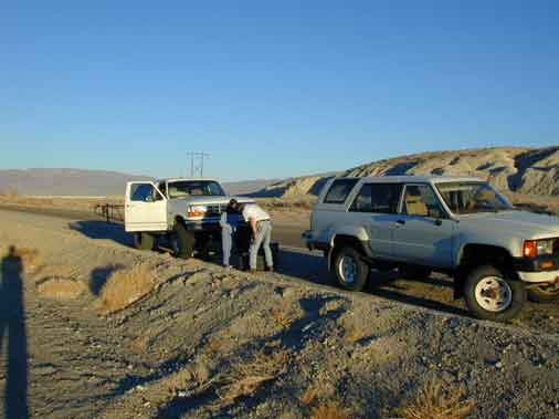 Part of the lineup of the truck at the beginning of the trip. We made a right off a dirt path soon after passing the town of Trona.