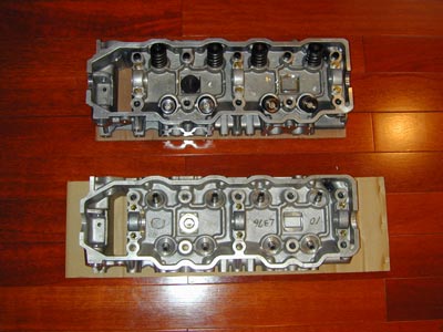 Combustion chamber is the area that concerns me the most. The first impression right after looking at it was that somehow the combustion chamber looks different than when I did the original head year and a half ago. The chamber seems to be deeper and narrower. After buying the OEM head for $470, direct comparison of the two reveals that while though general configuration are about the same, various contours are different. I would have no idea how it would affect performance if it improves power or mpg. It takes complicated computer analysis to see how combustion behaves. Cylinder head shaping is part art and part science. I would tend to think Toyota spent some time shaping their heads to get the optimized contour. The engnbldr head's sharp angle would probably restrict the flow of air into the chamber. Although that is just my guess.
