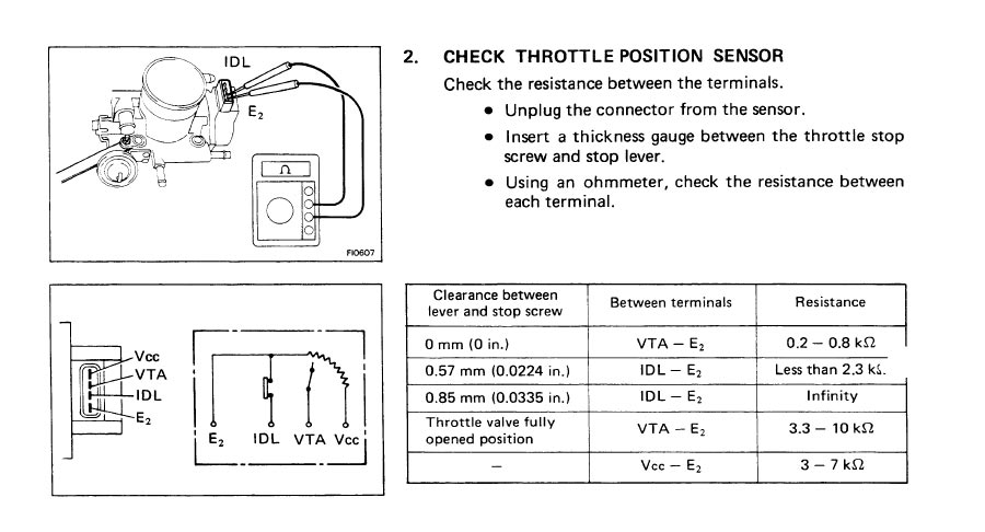 Another must check on the 22RE. Throttle position sensor. This is sensitive to the throttle stop adjustment. Over time the throttle stop gets out of adjustment, and this gets out of adjustment as well. Engine will idle rough with this out of adjustment.