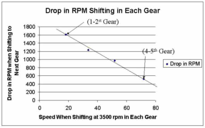 As seen in the chart above, in first gear, the rpm drops by 1600 rpm when shifting from first to second at 3500rpm shift point. In second gear, the rpm drops by 1230rpm when shifting from second to third at the same 3500 rpm shift point. Third gear drop is 970rpm. Forth to fifth gear is only a 520 rpm drop from 3500 to 3000 when shifting at 75 mph. At 2800 rpm, the engine still have enough torque to accelerate the truck to perhaps 90mph at near peak torque of 3730 rpm to overcome air resistance at 90mph. That is quite impressive for a 4 cyl. engine in a 2ton truck. This is possible due to efficient gearing.