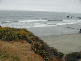 Many remote beachs along the coast are difficult to access. Many of them the beach are quite steep, so that the waves crash down hard on you if you try to enter the water. Near Big Sur, this is a very good shallow beach. It was too cold to swim that day.