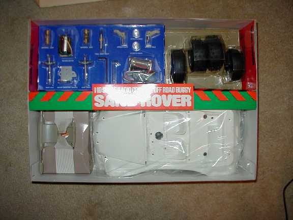 The Sand Rover came out around the 1982 time frame along with the Sand Rover. This was considered to be the very low end of R/C cars for Tamiya. It must have been a popular offering since it stirred up copies from toy manufactures. In the 80's you could find copy cat Sand Rover and Holiday buggy in department stores. They were were in ready build form, but the size was almost as large as the Tamiya sand rover, and they also have suspenison that mimick that of the Tamiya Sand Rover. I was even amused to find some small motorized non radio controlled Sand Rovers in those stores with fake Sand Rover like suspension that don't really operate. It was like a model of a model of a model of the real buggy.