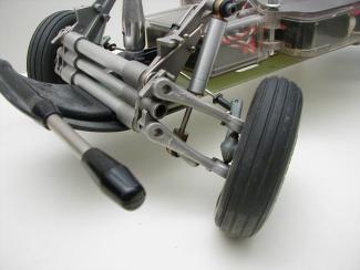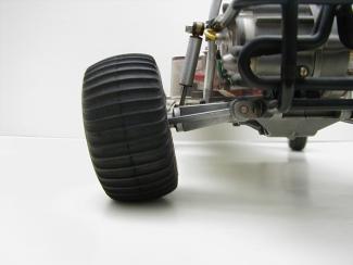 The front suspension is a working replica of the real VW suspension. The ball joints tend to be the weakest point on the model. After a crash, it would often come out. The shafts that the swing arm pivot on can also get bent slightly in a severe crash, but it does not affect operation of the car. The rest of the suspension is near bullet proof. |