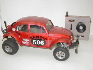 Flashback to the 80's- Immaculate example of a near completed Sand Scorcher with era correct competition radio. Car has only been ran on carpet. Body of this model have several external pieces that has not been assembled. The Sand Scorcher is the most classic of R/C cars. This is the car that started the R/C car craze that lasted until the 90's when participation tapered off. The car had life like working suspension and a waterproof radio box. Cars prior to the Sand Scorcher had suspension like the XR311, but they were fragile, and had poor performance without a shock or any type of friction damping. It was more of a curiosity than a true working suspension. The mechanisms of the Sand Scorcher was very imaginative, and it hit the market right on, giving the hobbiest exactly what they wanted. It was pushing the envelope of practical miniturization in the hobby world. |